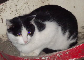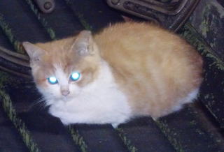 10.この五匹の子猫に同伴していた成猫の白茶の雌です。この雌猫は避妊手術を受けた印に右耳が切断されています。