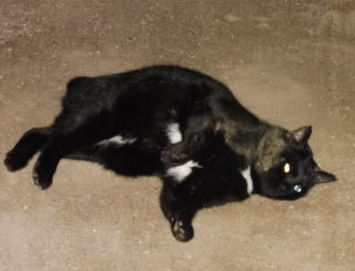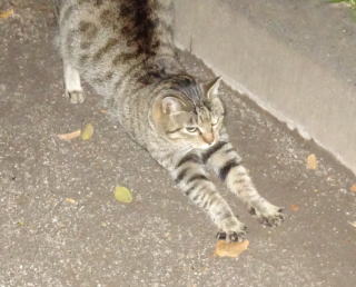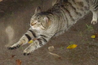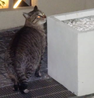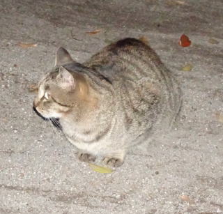 22.そうです。地域のボス猫の茶子ちゃんです。真から狂暴な雄の黒猫や猛烈な雄の黒猫には一方的にイジメられていたのに普通の戦闘力の雄猫のクリスちゃん(キリスト教徒)を威圧しています。地域のボス猫の茶子ちゃんは強いのか弱いのか良くわかりません。