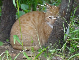 44.奈々ちゃんは態度がデカくてもまだまだ子猫ちゃん。昼間は木陰に隠れています。