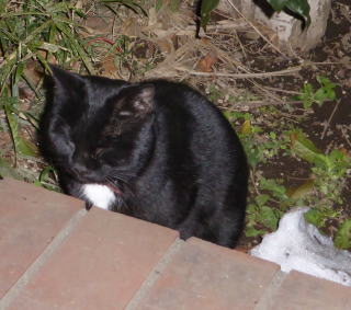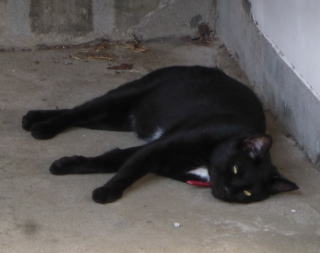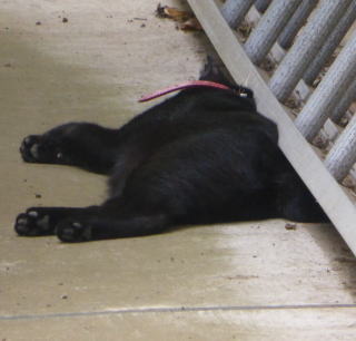 この画像は九郎ちゃん21の28です。九郎ちゃんはメーン州の気候では快適に生活できたと思います。しかし東京の真夏日(30度以上)猛暑日(35度以上)では「行き倒れネコちゃん」になっていました。そして頭部の熱を放出する為、人間のハゲ親父の様に黒ハゲになりました。気候が違い過ぎた様です。