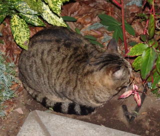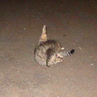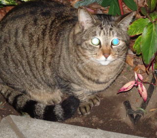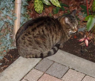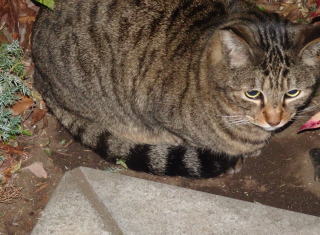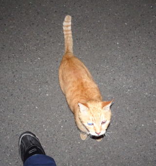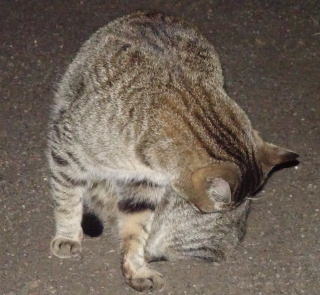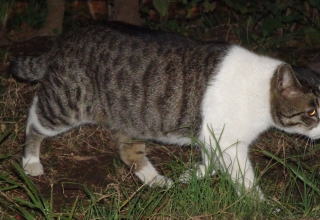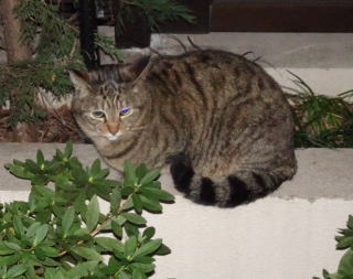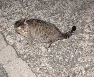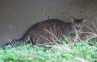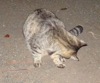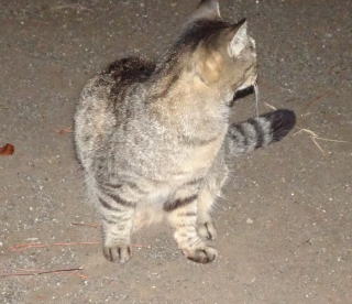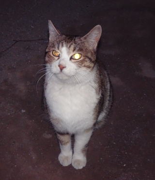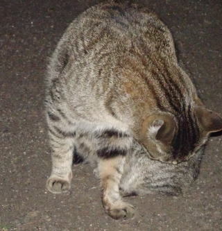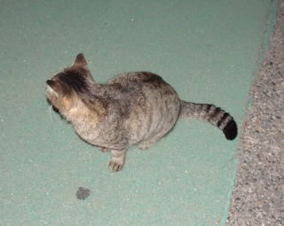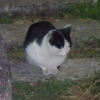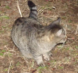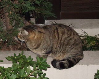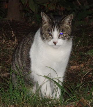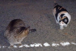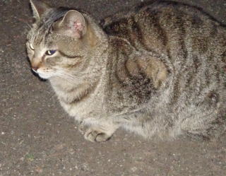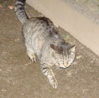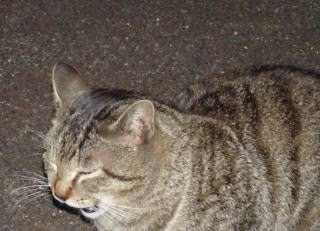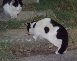 この画像は脇役42の40です。しかし実際はこの年下の三毛の雌猫でした。暗闇で見ると黒白猫に見えたのかもしれません。