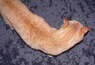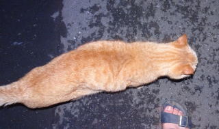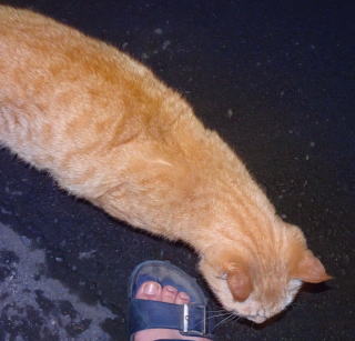 パパの足にマーキングをするチャトランちゃん。デブリン杏奈ちゃんやデブリン・ハンナちゃんと違って短毛だけどメーン・クーン種の胴長な体型をしています。パパとチャトランちゃんはラブラブなんだ。