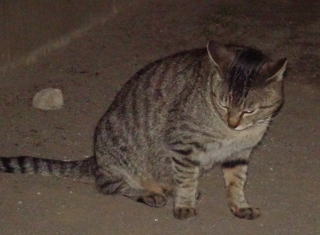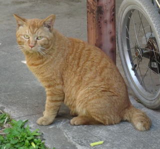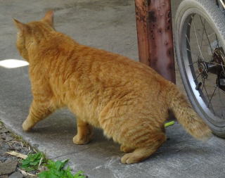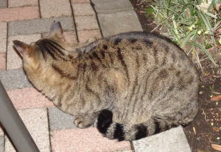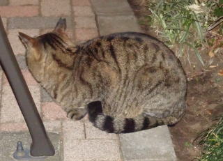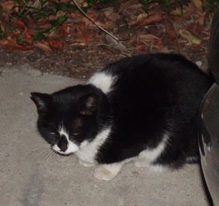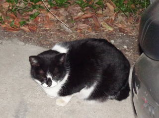 40.下界の自転車小屋に黒白猫Bちゃんがうずくまっていました。