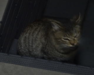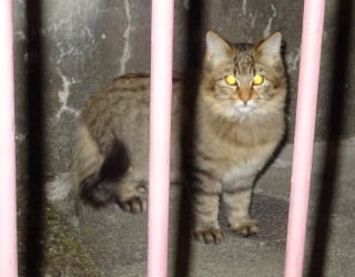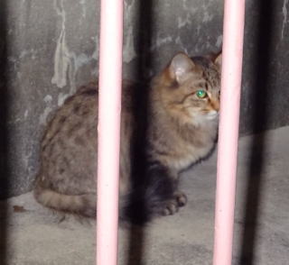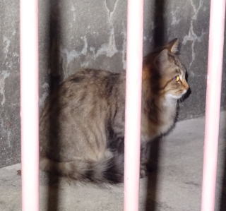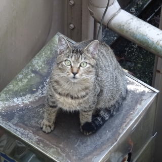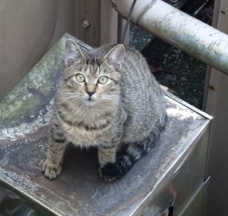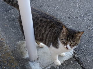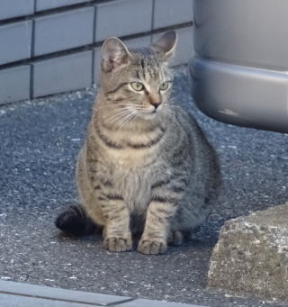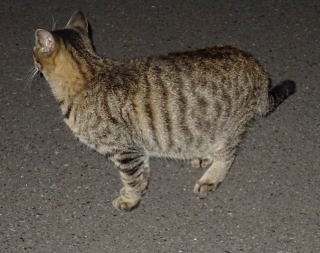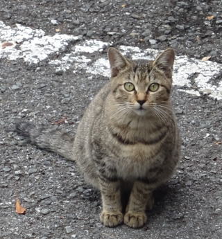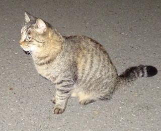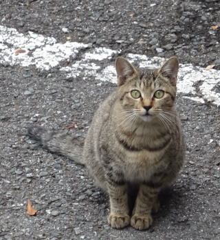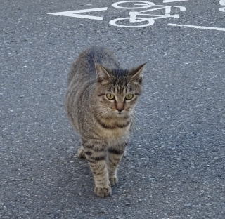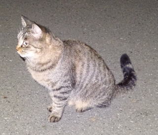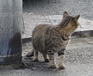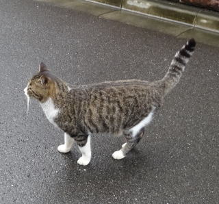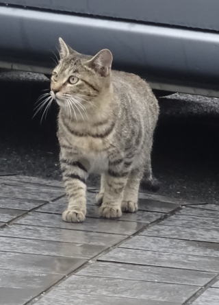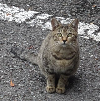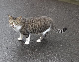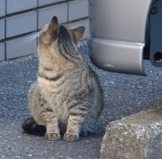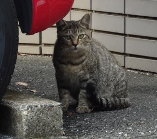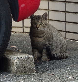8.パパの自宅の駐車場の自動車の下に潜んでいたアンナちゃん。普通のキジ虎より薄い毛が白い感じがする。それに父系(原種)は日本猫の感じです。父親は日本猫または雑種の白猫かもしれない。