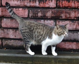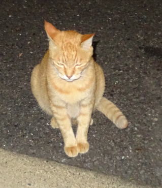 12.パパがアンナちゃんに「パパの養女になってください」とお願いしました。アンナちゃんはパパの自宅の敷地内で産まれた子猫で幼児の時からパパを見ています(逃げて物陰に隠れますが…)。今回はアンナちゃんからパパの方に近寄ってくれました。