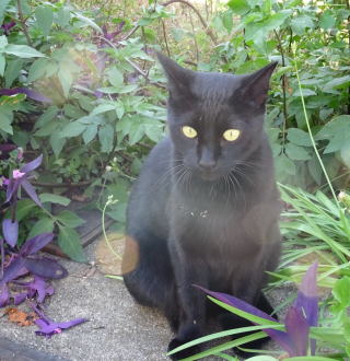 39.黒猫の烈ちゃんが逆光を浴びています。太陽光と烈ちゃんの共演です。何か意味があるのでしょうか?。