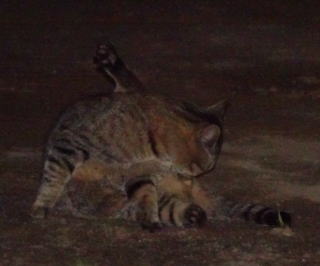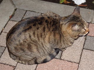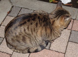 32.ニャンコ伸びをするデブリンちゃん。それでも下半身は巨大(肥満)です。