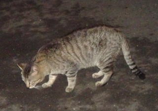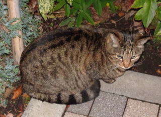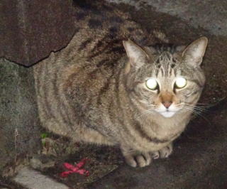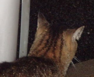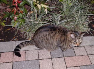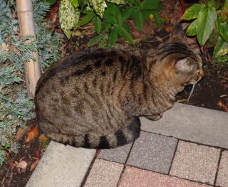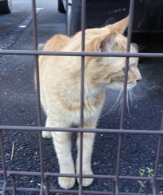 34.「茶毛のクラシック・タビーの立派な彼氏は警戒心から物陰に隠れるので安心して表に出て来てください」とハンナちゃんに言いたい。