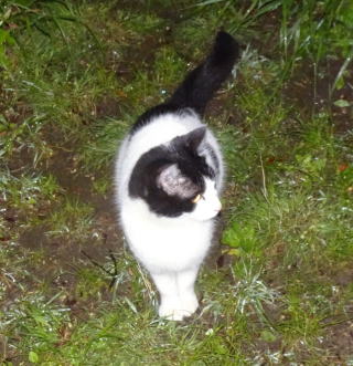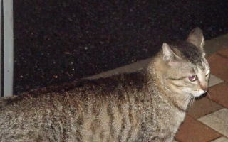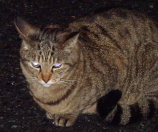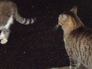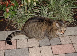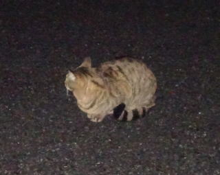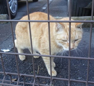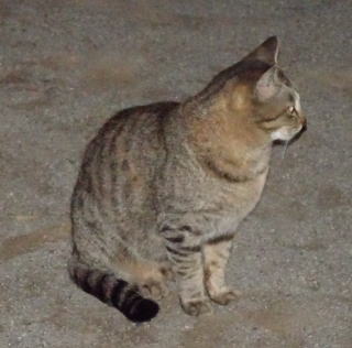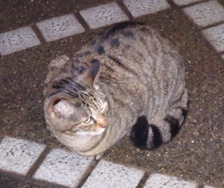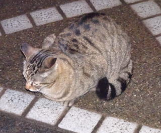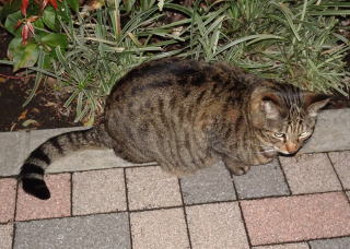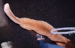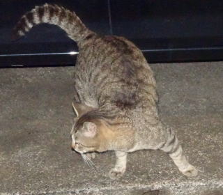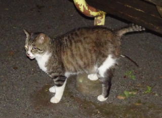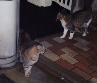 3.ハンナちゃんはパパに彼氏を引き合わせた様です。巨体なハンナちゃんより大柄で見事な茶毛のクラシック・タビー柄の雄猫でした。ペット・ショップで15~20万円してもおかしくありません。ただ中途半端な短尾なのでその二世なのかもしれません。