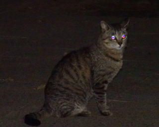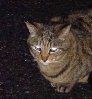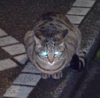 17.チャトランちゃんは巨大で胴長ですね。後日。明るい太陽光の下でパパのデジカメのの黒いストラップを見ると若干、青白く変色しているのが確認できました。