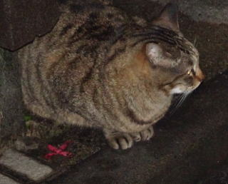 2.巨大で胴長なハンナちゃんの横に茶毛でクラシック・タビー柄のふてぶてしそうな雄猫がいました。