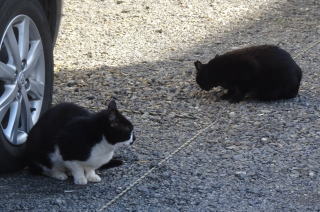 37.今日は老人ホームにファニナル爺さんを残して近くの駐車場にやって来た黒白猫Aちゃんと木上登子(きのうえたかこ)ちゃん。
