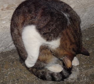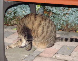 14.クリスティーヌちゃんや風子ちゃんは雌猫です。しっかり毛繕いしています。