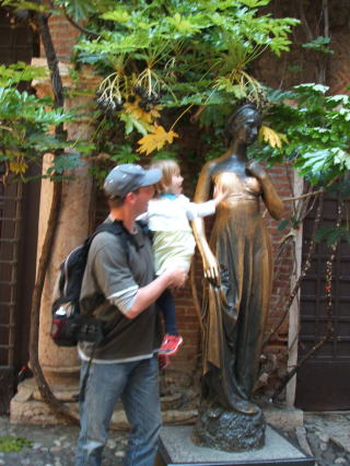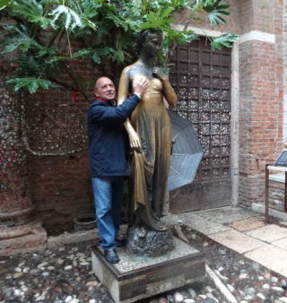 a3.「ジュリエッタの像」の右胸をさわって記念写真です。右胸をさわると幸運が訪れ恋愛成就すると信じられています。