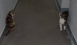 2.ドンナ杏奈ちゃんにマーキング(人間のハグ?)が出来ない「箱入り娘に近寄る悪い虫」は他の雌猫に近寄りました。