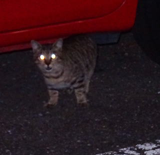 5.夜になってアンナちゃんが自動車の下に戻って来てくれました。良かった良かった。