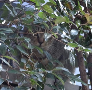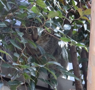 25.朝。玄関を開けるとアンナちゃんが「ミャーオン」と答えます。一体、どこに隠れているのか?と探すとここにいました。「アンナちゃん。パパを見て後づ去りするんじゃない。アンナちゃんがパパを呼んだのだから…」まだアンナちゃんは人間が怖いんだ。2m以内に人間が近づくと野良のアンナちゃんにとって恐怖なんだよね。