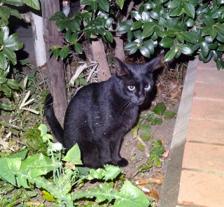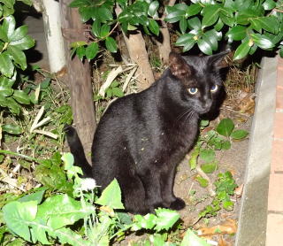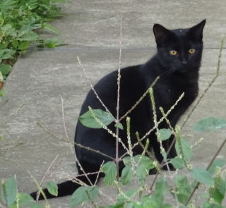 30.忍ちゃんが産んだ黒猫もこんなに大きくなりました。目や顔立ちが烈ちゃんに良く似ています。忍ちゃんと小太郎ちゃん姉弟がパパに良く馴れているのに対してこの子はパパを見ただけで逃げてしまう。まるでパパを恐竜や悪魔の様に怖がったフーちゃんみたいだ。いっそ風子(ふうこ)と名付けようか?。女の子でした。