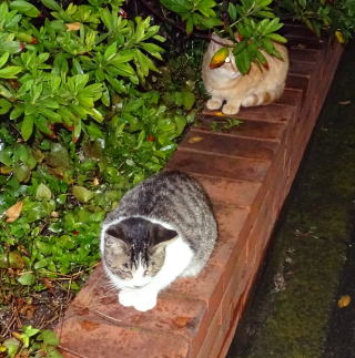 15.パパの自宅の駐車場にいる二匹の子猫達。左の茶虎の子猫はここまで移動して来ていたのですね。「口から先に生まれて来た女」はおしゃべりをしないと脳が活性化せず、無言のままだと鬱(うつ)になるそうです。本当でしょうか?。この子達は関係がない様です。