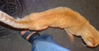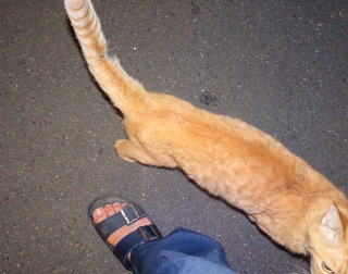 28.チャトランちゃんがパパの足にマーキングをはじめました。右下はデジカメのストラップです。