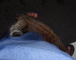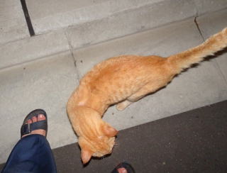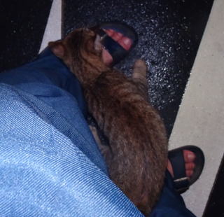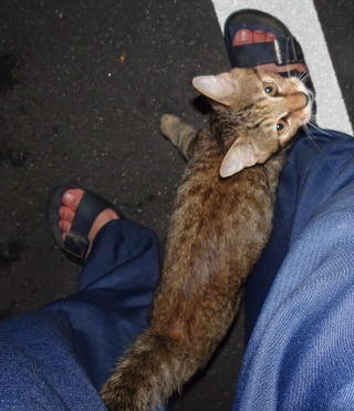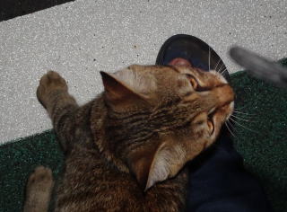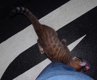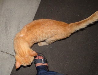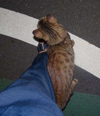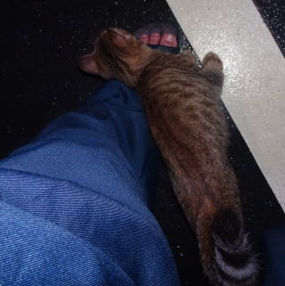 パパの足をマーキングしていたチャトランちゃんに続きアンネちゃんもパパの足をマーキングする様になりました。ただ前足の爪を立ててネコ・ジャンプをするのでパパのスボンはボロボロです。