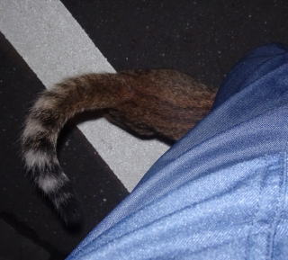 31.アンネちゃんはパパの足をマーキングした後、ネコ・ジャンプをして前足の爪でパパのズボンをズタズタに引き裂きます。