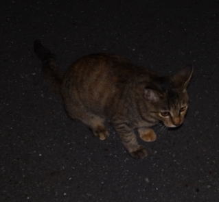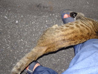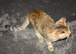 7.台風12号の雨風の中で激しく鳴き声でパパを呼び止めるネコちゃんがいました。