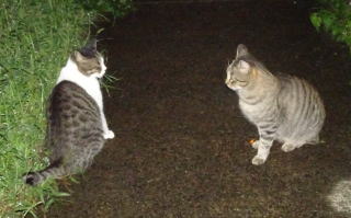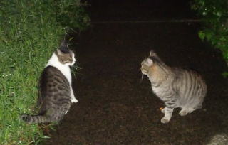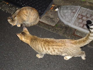 16.また地域のボス猫の茶子ちゃんが開くネコちゃんの集会に参加です。