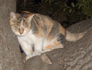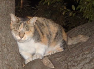 4.九郎ちゃんの未亡人である三毛珍獣ちゃんは実家のプチ豪邸では歳の離れた三毛のクラシック・タビー柄の妹に居場所を奪われ樫の木の上で野宿しているのでしょうか?。