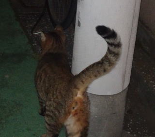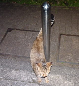 30.ポールに尾を巻き付けるキナコちゃん。ポール・ダンスを取得したいのでしょうか?。ポール・ダンスと言えば昔はアメリカのラスベガスのストリップ・クラブなどで好まれた踊りです。しかし現在ではアクロバティックな技を競うスポーツ競技として確立オリンピック参入を目出しています。因みに日本のストリップ劇場にはポール・ダンスはありません。ポールを用意できなかったのかポール・ダンスを踊るスキルがなかったのかまでは不明です。