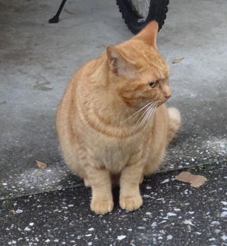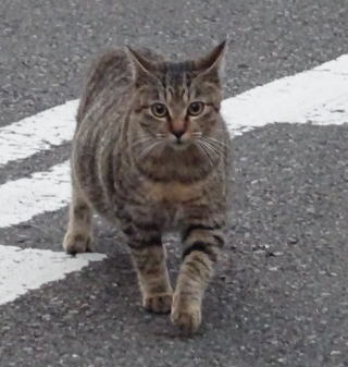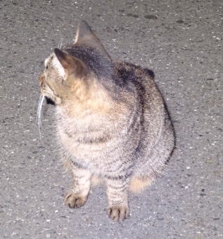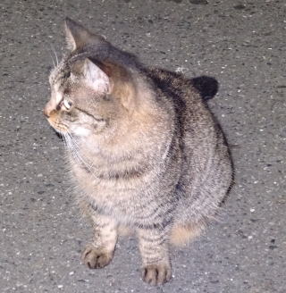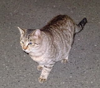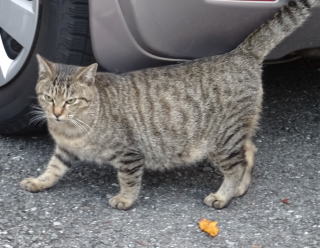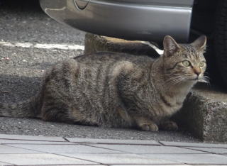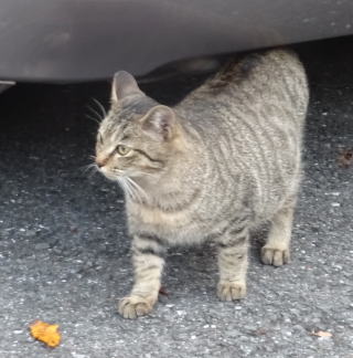 15.毎朝。アンナちゃんはパパが玄関を出ると「ミャーオン」と鳴いてその存在を知らせます。そして玄関前かパパの自宅の駐車場の自動車の下から出てきます。正に番犬そのものだ。