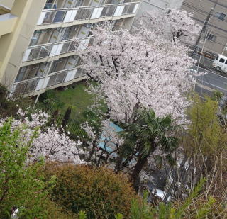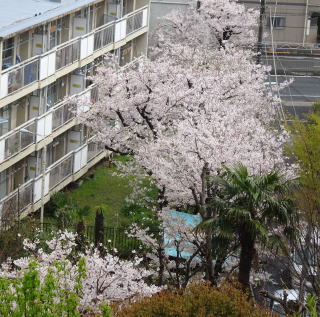 2.タヌキの里山から見下ろした桜です。お花見をしよう。