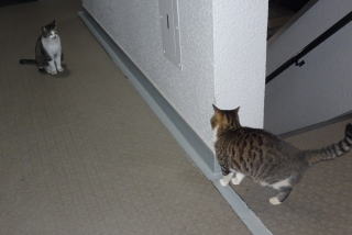 8.小太郎ちゃんはゴロニャンもマーキングもしない。しかしパパの進路妨害をする事は覚えたようだ。