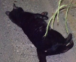 14.黒マル子ちゃんのゴロニャンです。地面にネコちゃんが落ちている様です。