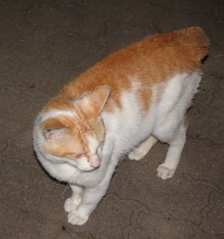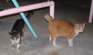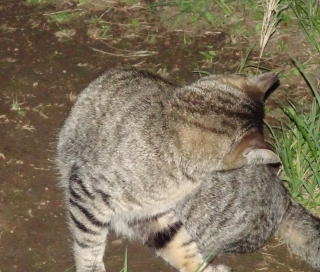 27.雌猫のお尻を虎視眈々と狙う茶白の雄猫。