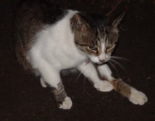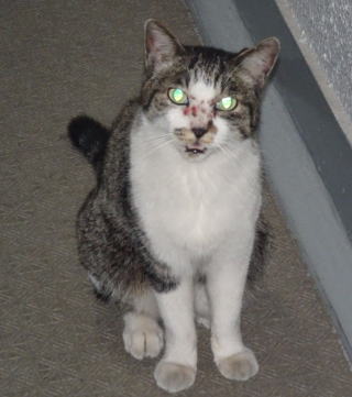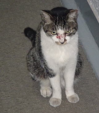 20.ニケちゃん。「その鼻はどうしたんだ?。病気ではないか?」と疑ったのだが真実は雌猫の爪出しネコ・パンチの跡でした。