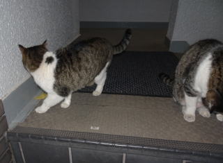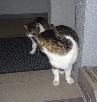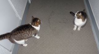 6.自分がパパをマーキングしたいのに姉妹のヴィクトリアちゃんにパパを譲る健気な鼻キズ子のニケちゃん。