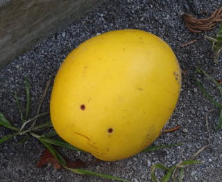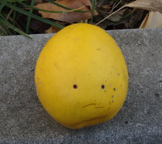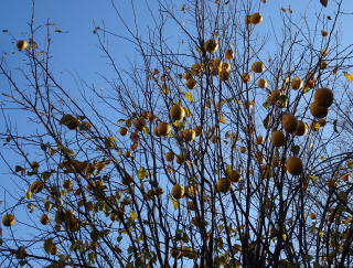 37.パパが天上世界(狸の里山)から下界(ダウン・タウン)へ降臨すると70代位の老婆がいてパパは質問をしました。「この果実はなんて種類ですか?」と言うと老婆は「これは花梨です。昔は花梨漬けや花梨酒にして利用していたが今では誰も見向きもしません。鳥すら食べません」との回答でした。