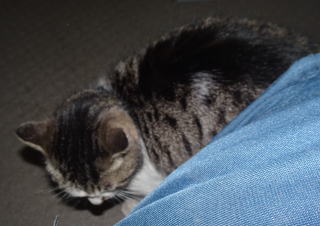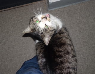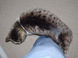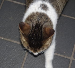 40.パパの足をマーキングする鼻キズ子のニケちゃん。
