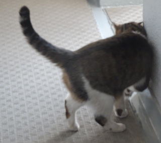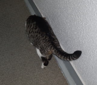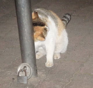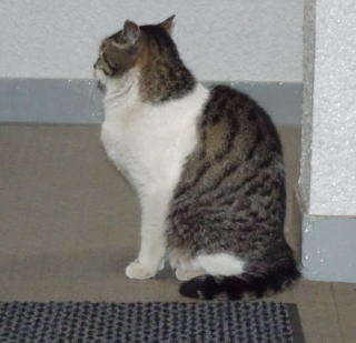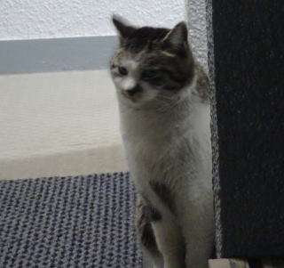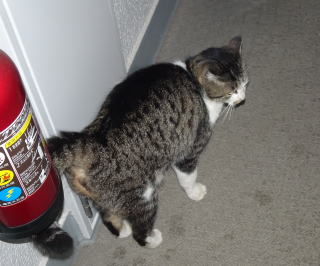 35.ヴィクトリアちゃんが占有していた消火器を今日は鼻キズ子のニケちゃんが占有しています。