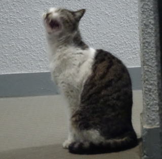 33.大あくびをして門番の仕事をサボる鼻キズ子のニケちゃん。減給が必要なのか?。
