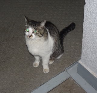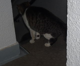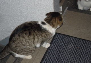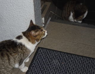 30.ヴィクトリアちゃんが門番として雌猫の侵入を防げるかテストしているのでしょうか?。