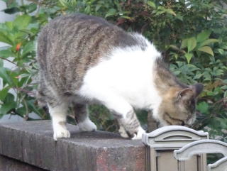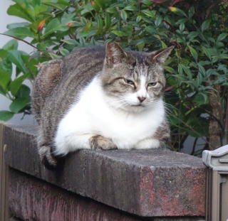 10.塀の上で香箱座りをするクリスチャン(キリスト教徒)。