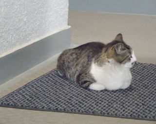 44.ヴィクトリアちゃんがパパの自宅の玄関マットで香箱座りしている姿を見た事がありません。鼻キズ子のニケちゃんは茶白の雄猫と一緒に玄関マットの上で香箱座りをしてデートしていますがヴィクトリアちゃんには許可してないのでしょうか?。