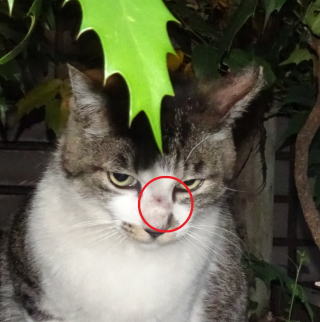 上記のアップ。今度はスリキズでしょうか?数mm鼻の毛がハゲて皮膚が露出しています。