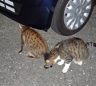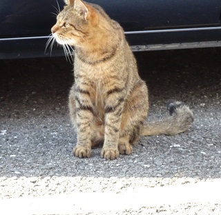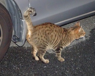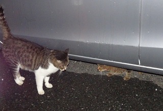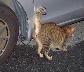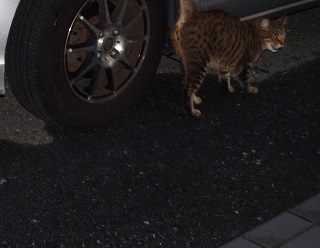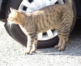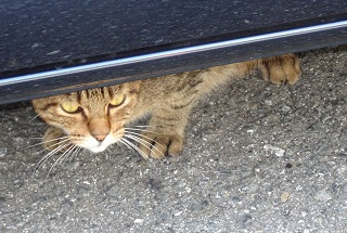13.小柄な杏子(あんず)ちゃんにとって自動車の下と屋根や塀の上が安息の地なのです。