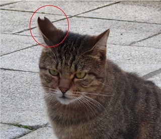 動物病院でネコちゃんが去勢・避妊されるとその印として耳の一部を切断されます。杏子(あんず)ちゃんも生後半年の時点で避妊手術を受けています。はたして子猫を生む事ができるのでしょうか?。