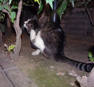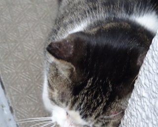 18.右足で頭部をかく鼻キズ子のニケちゃん。