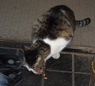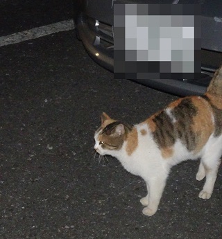 9.今日の犠牲者はこの薄い色の三毛猫でした。ここは猛ダッシュで追いかけっこをする広い土地がありました。