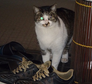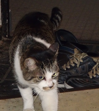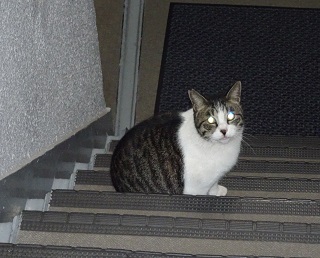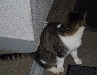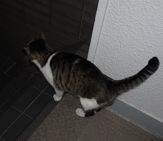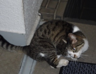 22.鼻キズ子のニケちゃんは玄関から遠慮もなくパパの室内へ入ってきます。